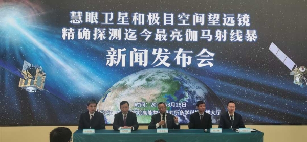 慧眼卫星和极目空间望远镜观测迄今最亮伽马暴示意图。