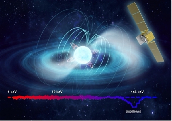 2020年,“慧眼”卫星在编号为GRO J1008-57的中子星中探测到了90千电子伏的回旋吸收线,对应10亿特斯拉的中子星表面磁场,是当时宇宙磁场直接测量的世界纪录。随后,“慧眼”团队还在另外一个中子星(1A 0535+262)的能谱上探测到了约100千电子伏的回旋吸收线。