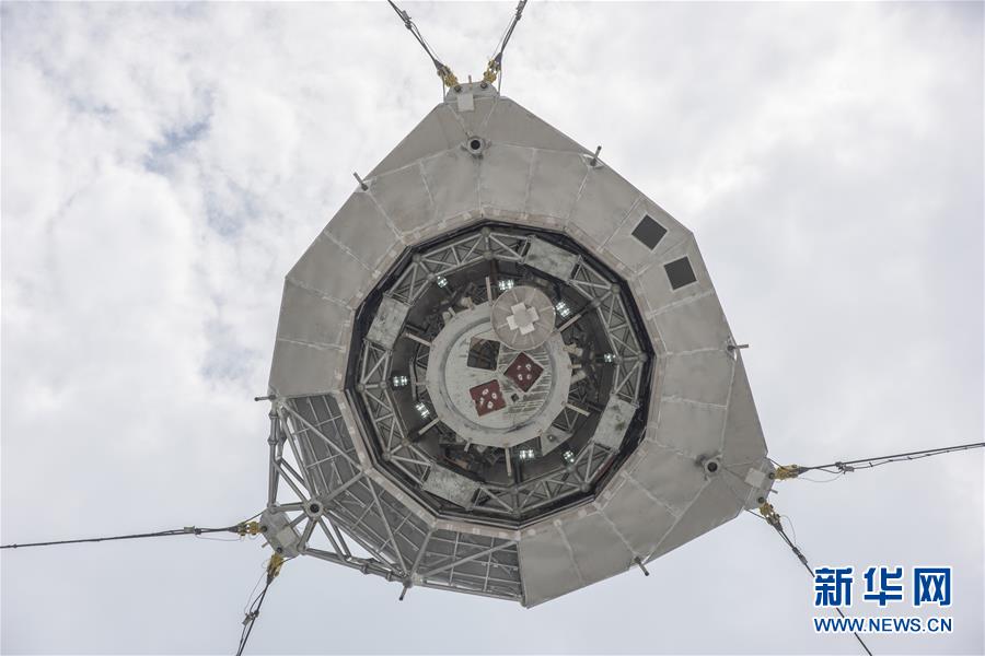 6索并联驱动控制系统对馈源舱进行姿态调整(6月29日摄)。新华社记者 刘续 摄