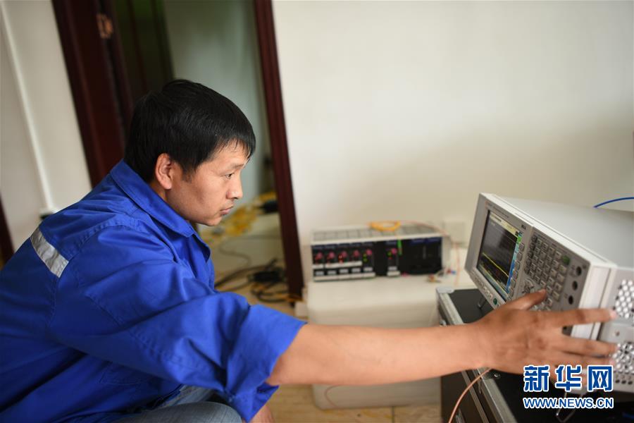 6月30日,6索并联驱动控制系统负责人武荣阳在指挥中心内调试设备。新华社记者 刘续 摄