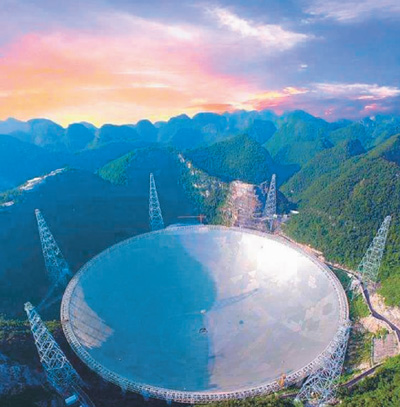 位于贵州平塘的500米口径球面射电望远镜(FAST) 新华社发