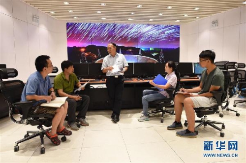 工作人员在FAST总控室内交流(2017年8月10日摄)。新华社记者 欧东衢 摄