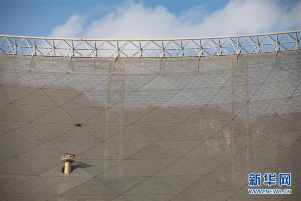 1月9日,工作人员在对FAST反射面板进行检修。新华社记者 欧东衢 摄