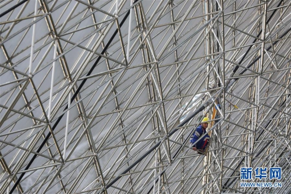 1月9日,工作人员对FAST反射面板进行检修。新华社记者 刘续 摄