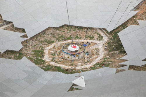 2015年11月21日上午10时58分,在建的世界最大单口径射电望远镜——500米口径球面射电望远镜(FAST)的核心部件“馈源舱”进行首次升舱试验。6根钢索拖动馈源舱提升108米,并进行相应的功能性测试。这是FAST工程的又一个重要里程碑,标志着FAST工程馈源支撑系统正式进入六索带载联调阶段。