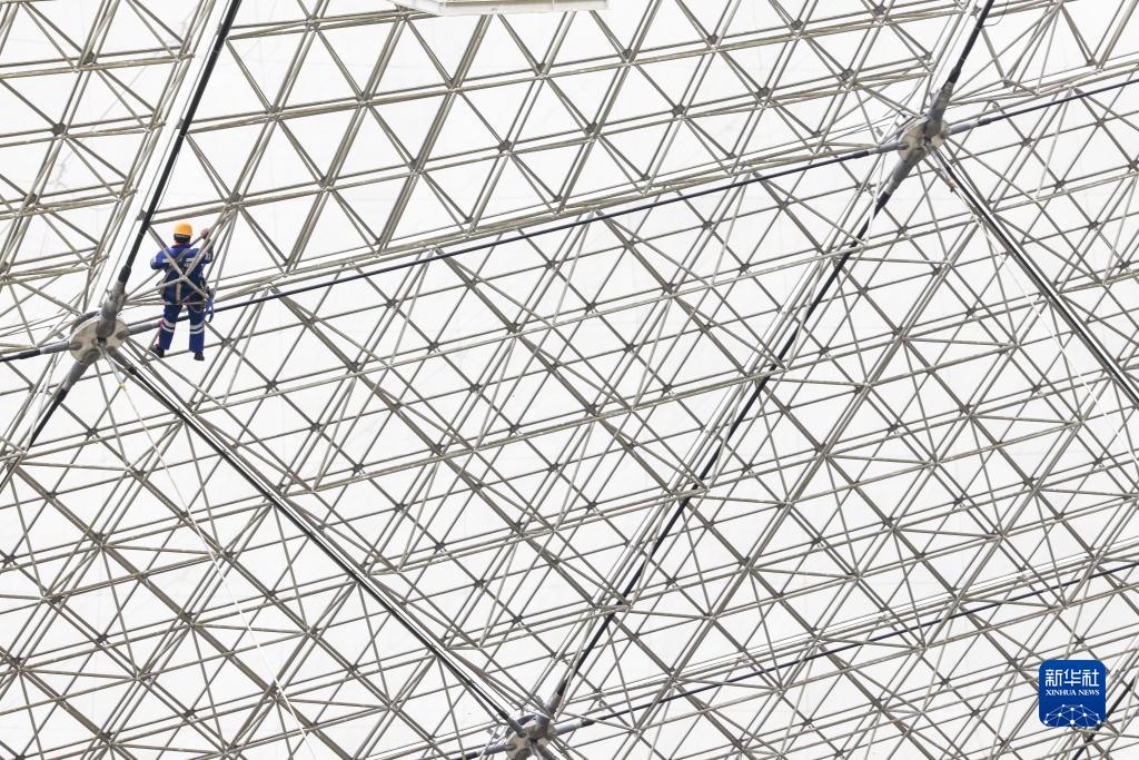 2021年12反射面板进行维护保养。新华社记者 欧东衢摄