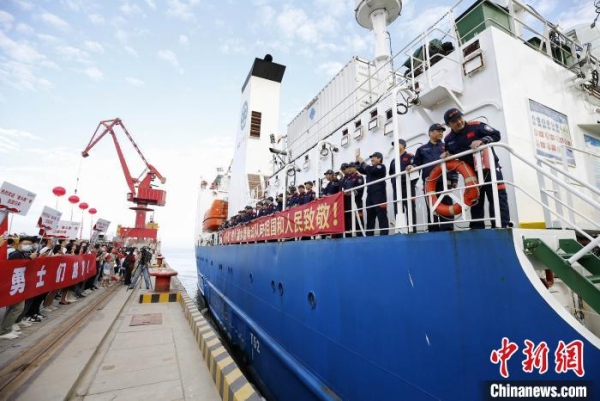 “奋斗者”号返航三亚接船仪式现场。中科院科学传播局 供图