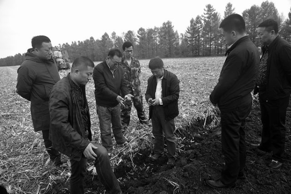 韩晓增(右三)在东北三江平原宝泉岭农场暗棕壤肥沃耕层构建现场