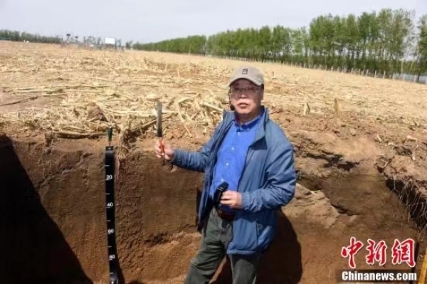 “黑土粮仓”科技会战“梨树模式”示范区,中科院沈阳应用生态研究所张旭东研究员作为“梨树模式”创建者,在示范区基地介绍黑土地地下分层情况。“梨树模式”是由中科院东北地理与农业生态研究所、沈阳应用生态研究所和中国农业大学合作研究开发的保护性耕作模式,最早在吉林省梨树县建立研究基地并推广示范而得名,为因地制宜开展东北黑土地保护与利用提供系统解决方案。中新社记者孙自法 摄