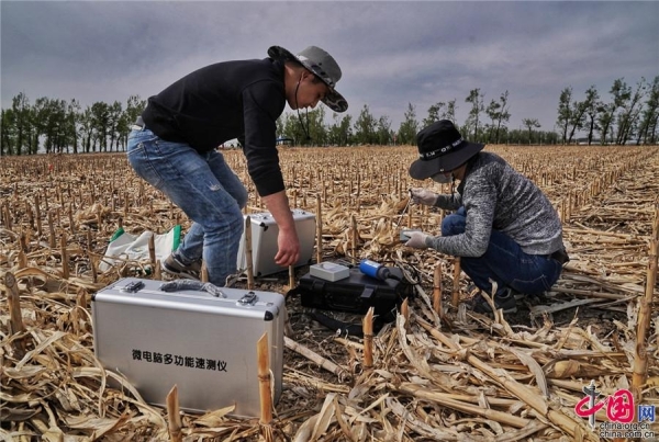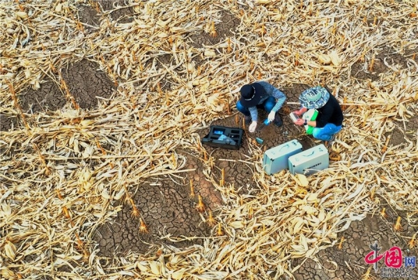 “黑土粮仓”科技会战“梨树模式”示范区。图为科研人员采集样本和数据。中科院科技摄影联盟供图