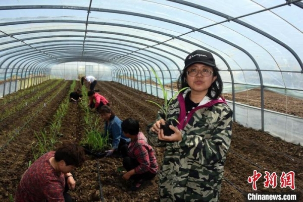 “梨树模式”研究团队成员、中科院东北地理所敖曼博士展示介绍玉米育种研究进展。中新社记者 孙自法 摄