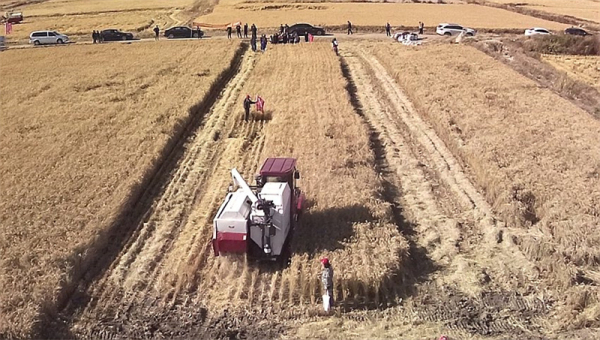 10月12日,在吉林省白城市大安盐碱地水田万亩核心示范区,吉林大安农田生态系统国家野外科学观测研究站暨午夜av