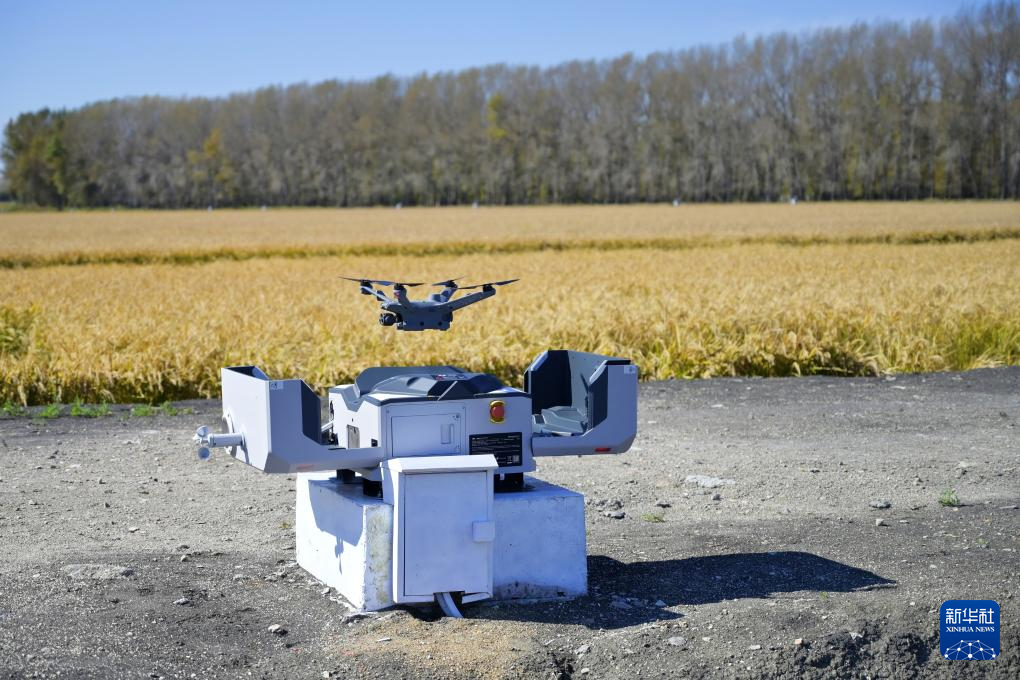北大荒友谊现代农业实验站,完成智能巡田任务的无人机在定期自动返航。新华社记者 石枫 摄