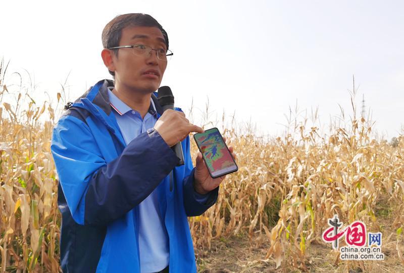 东北地理与农业生态研究所研究员刘焕军展示黑土地天空地立体监测技术与平台APP。中国网 王振红摄