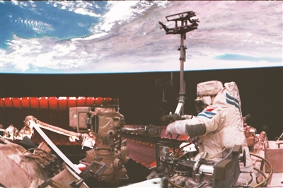 神舟十八号航天员李聪在空间站组合体舱外作业。新华社发