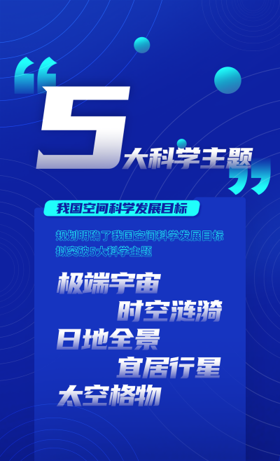 规划明确了我国空间科学发展目标,提出了我国拟突破的极端宇宙、时空涟漪、日地全景、宜居行星、太空格物5大科学主题和17个优先发展方向,描绘了至2027年、2028—2035年和2036—2050年三个阶段实施的科学任务规划,形成了至2050年我国空间科学发展路线图。