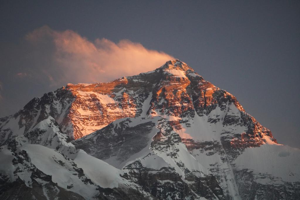 珠峰呈现日照金山的景象。新华社记者 田金文 摄