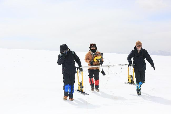 实验团队使用探地雷达勘测冰川厚度