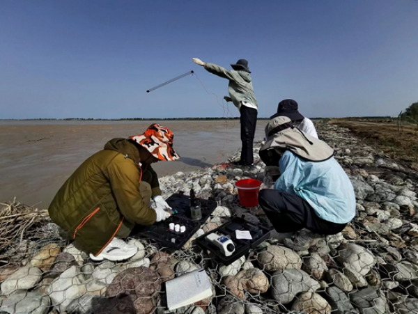 科考队员现场快速检测水样,读取数据并做记录。