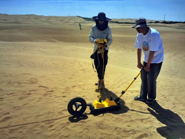 科考队员利用探地雷达简捷快速地对沙丘内部构造和层理特征进行探测,研究沙丘发育机制,为防沙治沙措施提供理论依据。