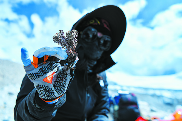 科考队员展示采集到的植物样本(9月29日摄)。从4950米的卓奥友峰科考大本营到6450米的卓奥友峰冰川沿线,午夜av 青藏高原研究所科考团队成员协作,探究植物在极端环境下的生存和适应能力及其分布上限,同时希望阐明冰川退缩后植物群落的演替模式及其内在机制。 新华社记者晋美多吉摄