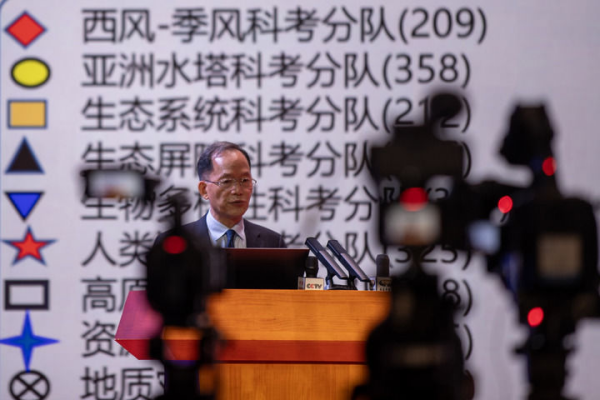 2024年8月18日,第二次青藏科考队队长姚檀栋院士在拉萨对本次科考10大任务的重要成果进行集中发布。 新华社记者 姜帆 摄