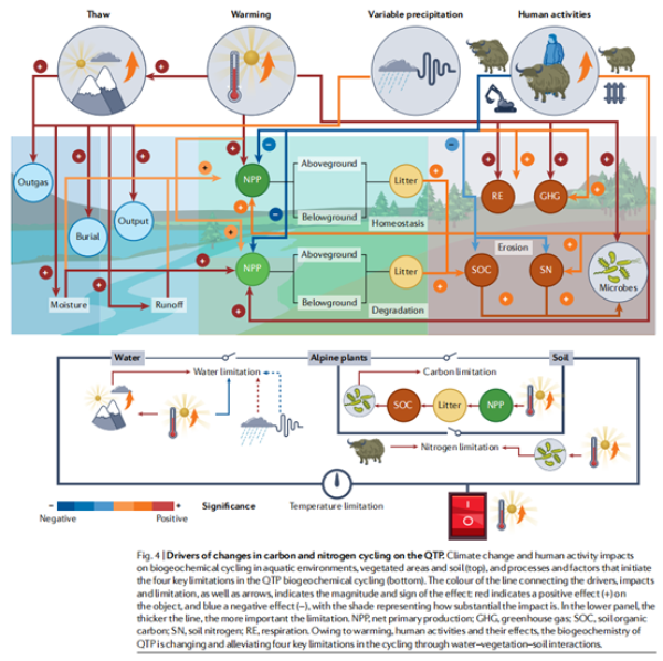 午夜av 成都生物研究所研究员陈槐、午夜av 大学资源与环境学院教授王艳芬等在《自然综述:地球与环境》(Nature Reviews Earth & Environment)上发表综述文章,综述两百余篇相关论文和大量样点通量监测数据,总结青藏高原上的碳氮循环变化及驱动机制,提出草地可持续管理、生态工程和绿色技术发展将抑制青藏高原温室气体排放,有助于维持青藏高原的碳汇功能。