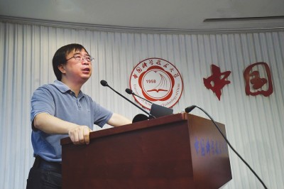 6月16日国际权威学术期刊《科学》用封面形式发表了中国科学技术大学教授、量子卫星项目首席科学家潘建伟团队题为《基于卫星的纠缠分发距离超过1200公里》的相关论文。图为潘建伟在中国科学技术大学理化大楼报告厅作成果介绍。记者谢震霖摄