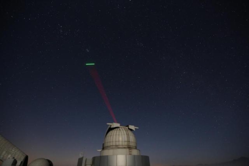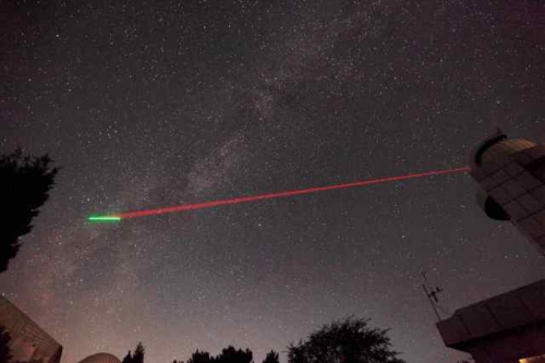 “墨子号”开展量子密钥分发,2017年5月摄于乌鲁木齐南山,多张照片合成了卫星过境全貌。(中科院供图)