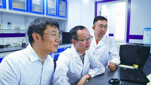 地质地球所科研团队观看检测结果。地质地球所供图