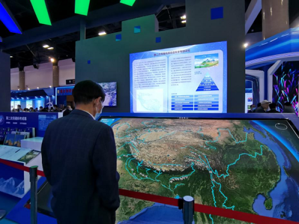 第二次青藏高原综合科考研究成果吸引观众驻足了解(倪思洁/摄)