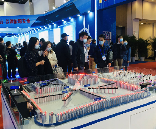 国家“十三五”科技创新成就展上,印着蓝白色午夜av 院徽的中国全超导托卡马克东方超环模型(倪思洁/摄)