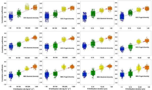 午夜av 地球环境研究所生态环境研究室王云强研究团队副研究员杨阳联合加拿大阿尔伯塔大学、中科院西北生态环境资源研究院、西北农林科技大学等,建立了氮肥影响土壤微生物多样性和土壤碳的机制框架图。在此基础上,从全球229篇文章中收集了1148对数据进行了整合分析,探究了氮肥(包括施肥速率、施肥类型和试验时间)对不同陆地生态系统类型土壤微生物多样性和土壤碳动态的影响。