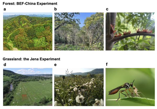 BEF-China森林生物多样性实验(上)和Jena草地生物多样性实验(下)