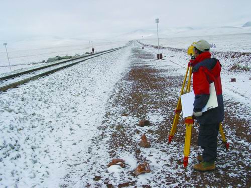 西北研究院科研人员在青藏铁路沿线开展冻土变形观测。西北研究院供图
