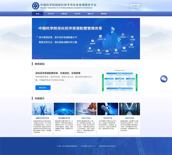 中科院院级科技专项信息管理服务平台上线,实现院级各类科技专项全流程规范化管理