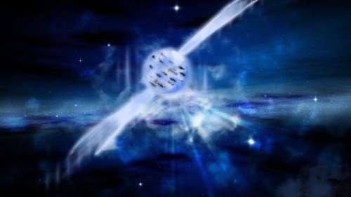 大质量恒星寿命终结时在超新星爆发中粉身碎骨,外层被炸飞,如果恒星遗留下的内核质量超过太阳的1.4倍,就会坍缩成主要由中子以及少量的电子和质子组成的中子星。以均匀的时间间隔辐射脉冲的中子星被称为脉冲星。所谓脉冲就像人的脉搏一样,一下一下出现短促的信号。