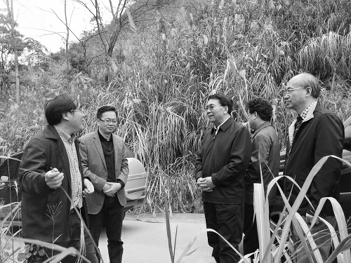 白春礼(左三)、张亚平(右一)考察环江下南乡古周村种草养牛基地。中科院供图