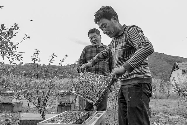 继食用菌之后,荒地村传统的养蜂产业也引起沈阳分院扶贫队的关注。受制于蜂种和养殖技术,荒地村的蜜蜂存活率、产蜜率均低。2016年,沈阳分院扶贫队将杂交繁育的中华蜂无偿转交给7户贫困户和示范户,并定期上门辅导。截至去年年底,荒地村的养蜂户有20户,养殖了近180箱中华蜂。