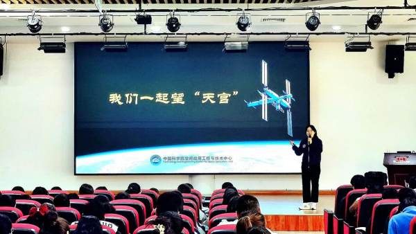 空间应用工程与技术中心副研究员张智慧专题报告《我们一起望“天宫”》 朱歆柯穆 摄)