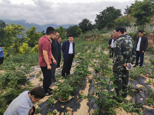 在毛湾村杂交构树种植示范基地,西北研究院调研了杂交构树示范基地的种植规模、生长状况和日常的管理与养护情况,认为产业兴旺是发展的根基,是扶贫村走向富裕的必经之路,要在科学探索中持续推进杂交构树种植养殖扶贫模式的发展,实现乡亲们的收入稳定增长。