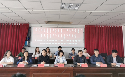 北京分院“春雨计划”专家报告暨第二期库伦旗妇女素质提升培训班邀请中科院心理研究所应用研究部主任、心理学博士张莉作《幸福家庭“心”建设》专题报告,为当地各行业近150名女性代表讲授女性在家庭生活中的角色,以及如何教育好孩子,处理好家庭关系等内容,获得强烈反响。同时,北京分院第二期“青春志愿行”科普讲座在库伦旗第一中学开讲。中科院古脊椎动物与古人类研究所副研究员卢静从生物进化论角度,深入浅出地讲授了《鱼儿如何爬上陆地》、微生物研究所科普志愿者王天威结合近年在库伦旗当地从事青贮饲料扶贫项目的体会,作了《我们身边的微生物》精彩报告。讲座开始前还举行了科普图书和院士语录书签的捐赠活动。微生物所党委书记、副所长李俊雄,通辽市妇联主席包兰芳,库伦旗副旗长哈申、张铜会等参加活动。
