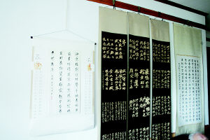 钱老爱好书法,客厅里散发着书香。