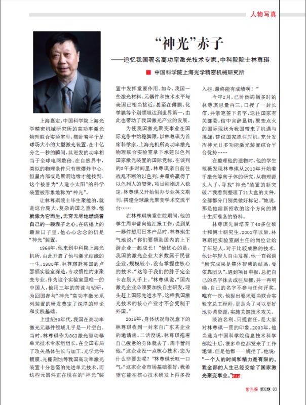 追忆我国著名高功率激光技术专家、中科院院士林尊琪