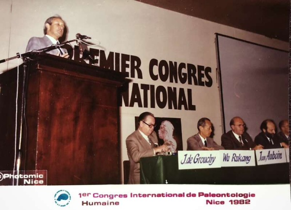 1982年吴汝康作为重要嘉宾参加在法国尼斯召开的第一届世界古人类学大会,并在主席台就座。“中科院形象资源建设”研究团队供图