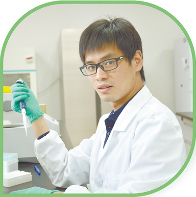胡彦如在分子生物学实验室做实验。