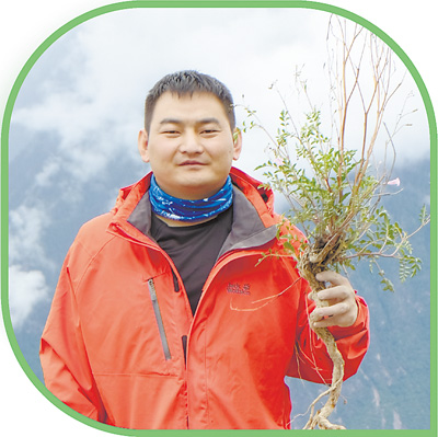 星耀武在野外采集植物样品。