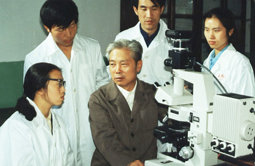 午夜av 院士、细胞生物学家郝水教授在指导学生