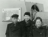 1956年,何泽慧、钱三强、赵忠尧在列宁格勒参观“阿芙乐尔”舰时留影