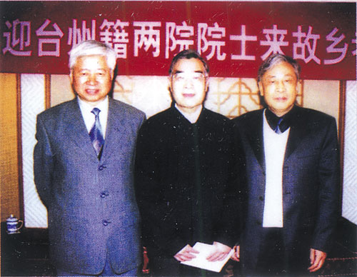 图为故乡考察的回浦中学三院士。左边这位是蒋民华院士。